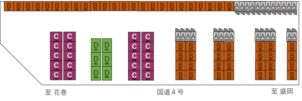 国道4号線沿い、紫波警察署の向い側。24時管理利用可能で、駐車スペース、照明もございます。